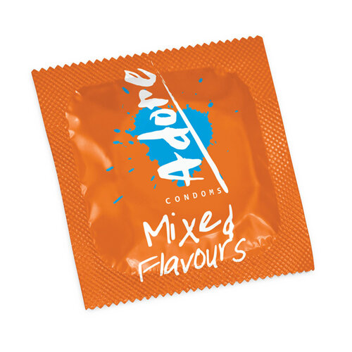 De Pasante Adore Flavours hebben verschillende kleuren en smaakjes! De verpakking bevat de volgende condooms: 3 rode condooms met aardbeiensmaak, 3 bruine condooms met chocoladesmaak, 3 blauwe condooms met bosbessmaak en 3 groene condooms met muntsmaak.