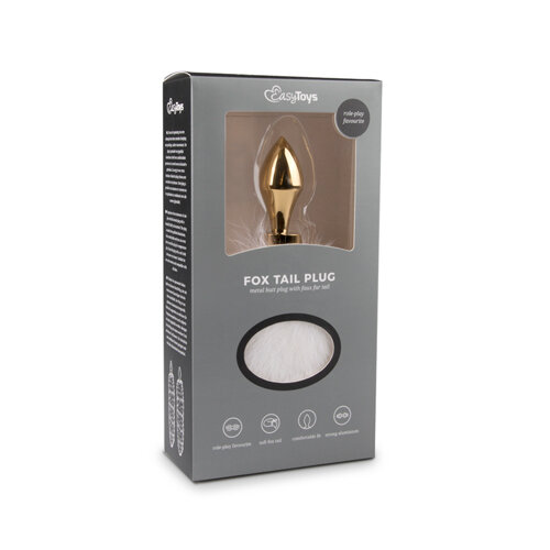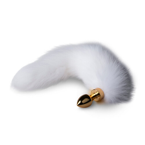 Kleine goudkleurige buttplug met witte vossenstaart